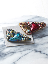 コスチュームジュエリーに、よく使われるビーズ刺しゅうのテクニックを学べます。フランス刺しゅうをベースにしたビーズ刺しゅうの基本に加え、アメリカの最新のビーズエンブロイダリー、「ソウタシエ(スータッシュ)」として人気のあるコード刺しゅう、そしてビーズステッチのテクニックも盛り込んでいます。このような4つの要素を一度に学べる、今までにない新しい講座です。